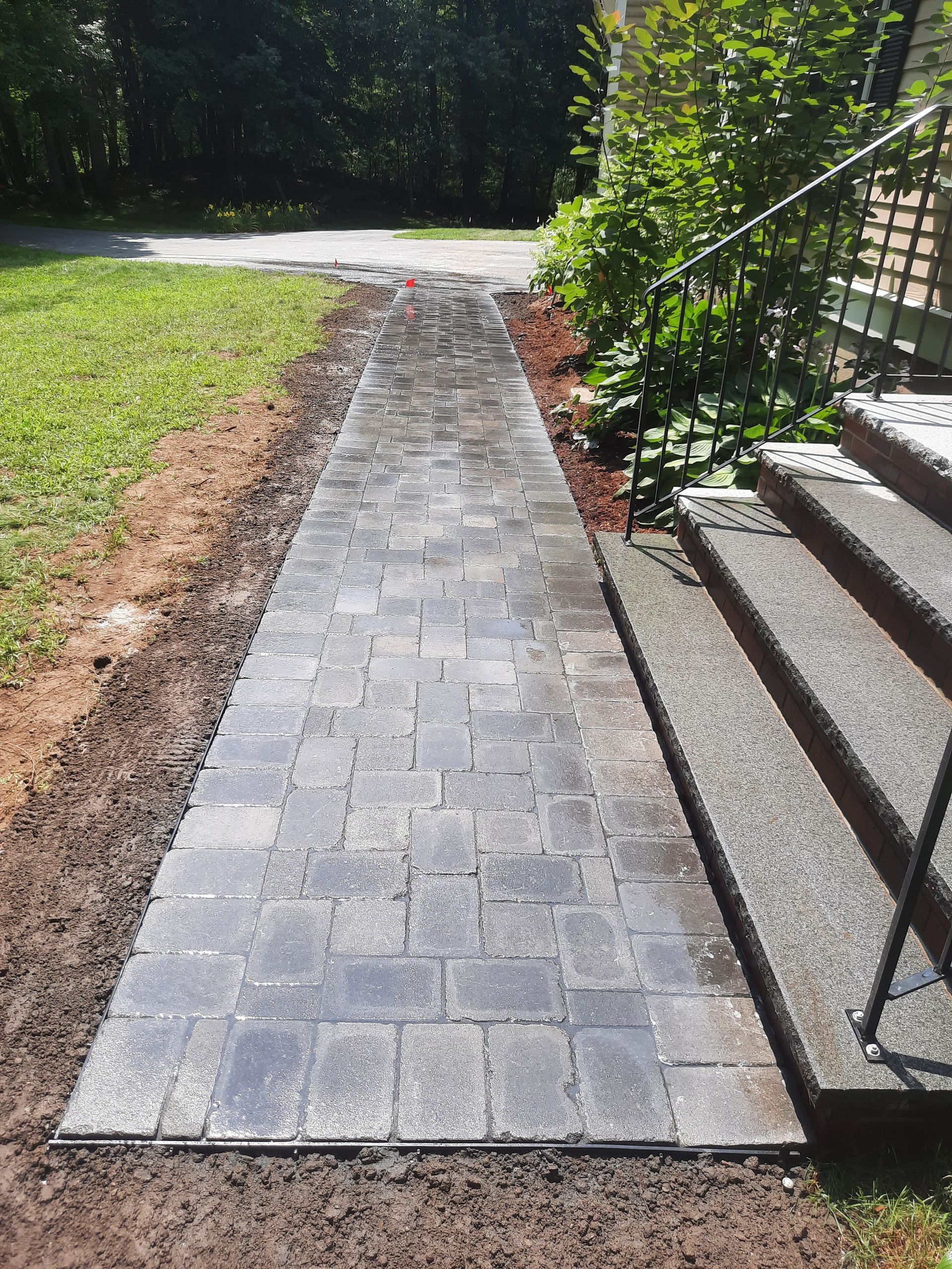 Cobblestone Edging & Granite Steps